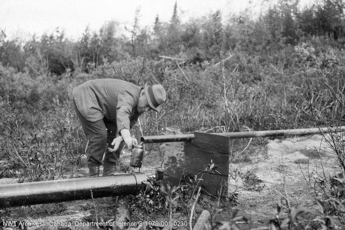 In 1911, J.K. Cornwall of the Northern Trading Company saw an oil slick on the surface of the Mackenzie River near Fort Norman (now Tulita). He hired a local Dene trapper, Karkassee, to locate and take samples from the source of this slick, a small pool of oil on the riverbank downstream from Fort Norman. A Pittsburgh, Pennsylvania, laboratory confirmed the high quality of the samples.