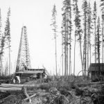 In 1919, Imperial Oil purchased J.K. Cornwall’s claim and sent their geologist, Ted Link, north to investigate. Leading a party of eight men, he transported a drilling rig and an ox from Edmonton to the area where these pools of oil had been seen. The men survived the extreme cold working through that first winter, but the ox became Christmas dinner!