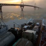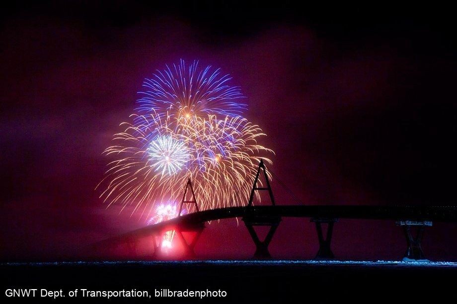 On November 30, 2012, the Deh Cho Bridge opened for traffic. In 54 seconds, a vehicle can fully cross the bridge, and 150,000 vehicles make the crossing annually. The bridge design won the 2013 Gustav Lindentahl Medal for “demonstrating harmony with the environment, aesthetic merit and successful community participation” by the International Bridge Conference. People and vehicles were not the only happy bridge travellers. The GNWT had to install cattle guards to deter wood buffalo from contentedly travelling toll-free over the new structure.